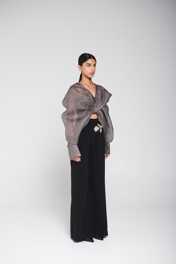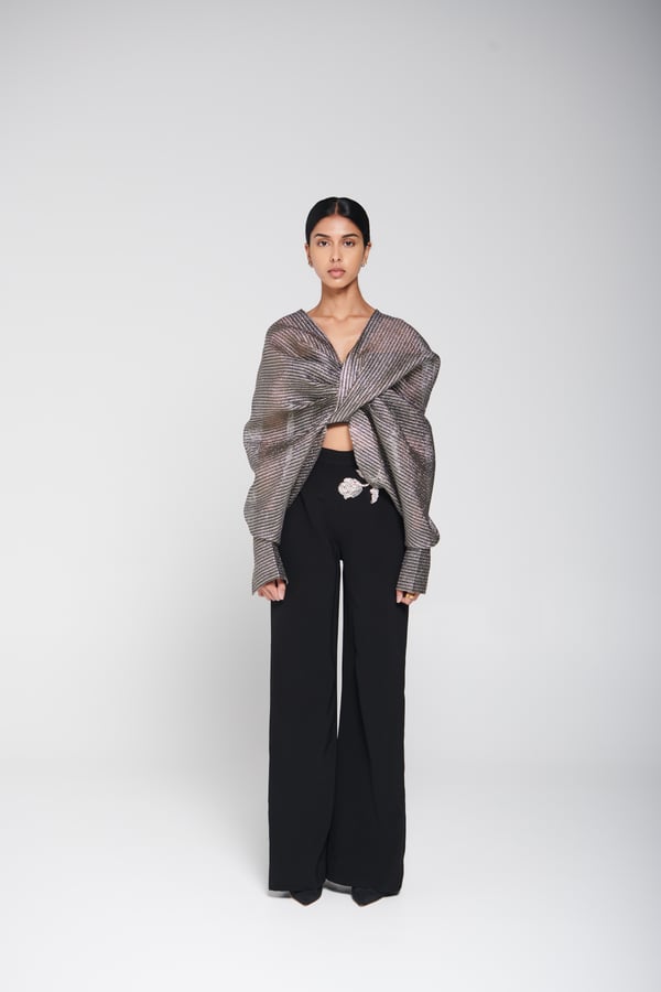 طقم أنيق بتصميم عصري يتكون من بلوزة بقماش لامع بتفاصيل أنيقة وأكمام واسعة، مع بنطال أسود واسع الأرجل مزين بشك يدوي ناعم يمنح الإطلالة لمسة راقية ومميزة -التوصيل قبل العيد -القطعة اوردر لا يوجد تبديل او استرجاع - القطع الجاهزه لا يوجد تعديل و الاستبدال و الاسترجاع خلال يوم فقط ترجمة